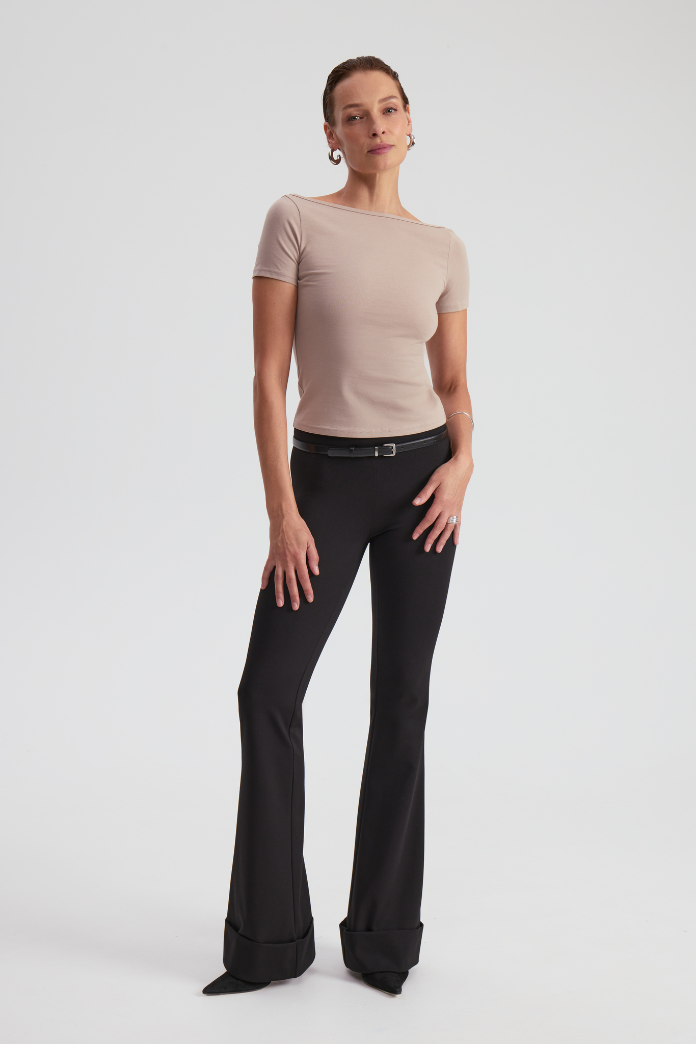Брюки из материала Джерси, мягкие приятные к телу, застежка боковая молния, низ брюк завершают отвороты (манжеты).