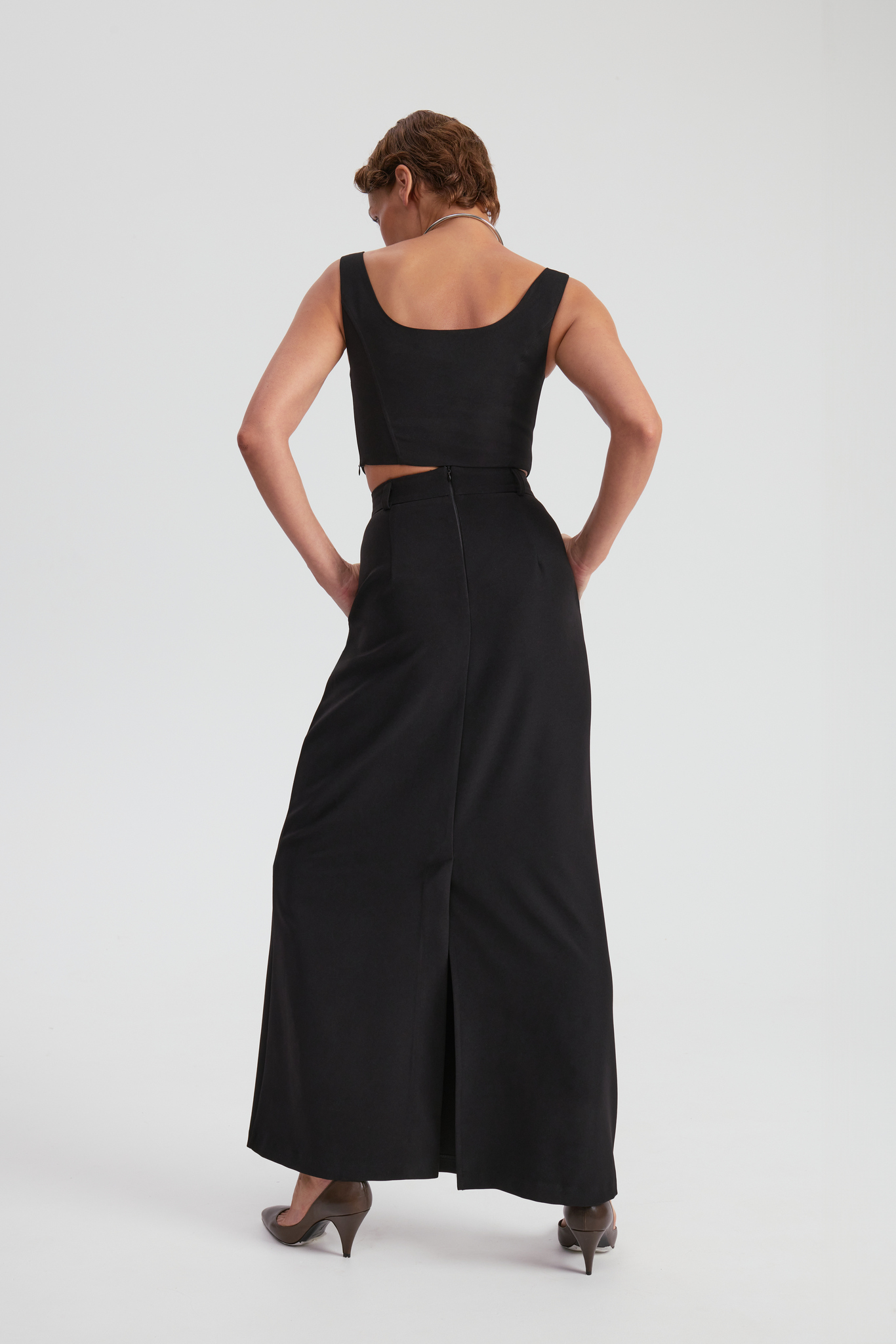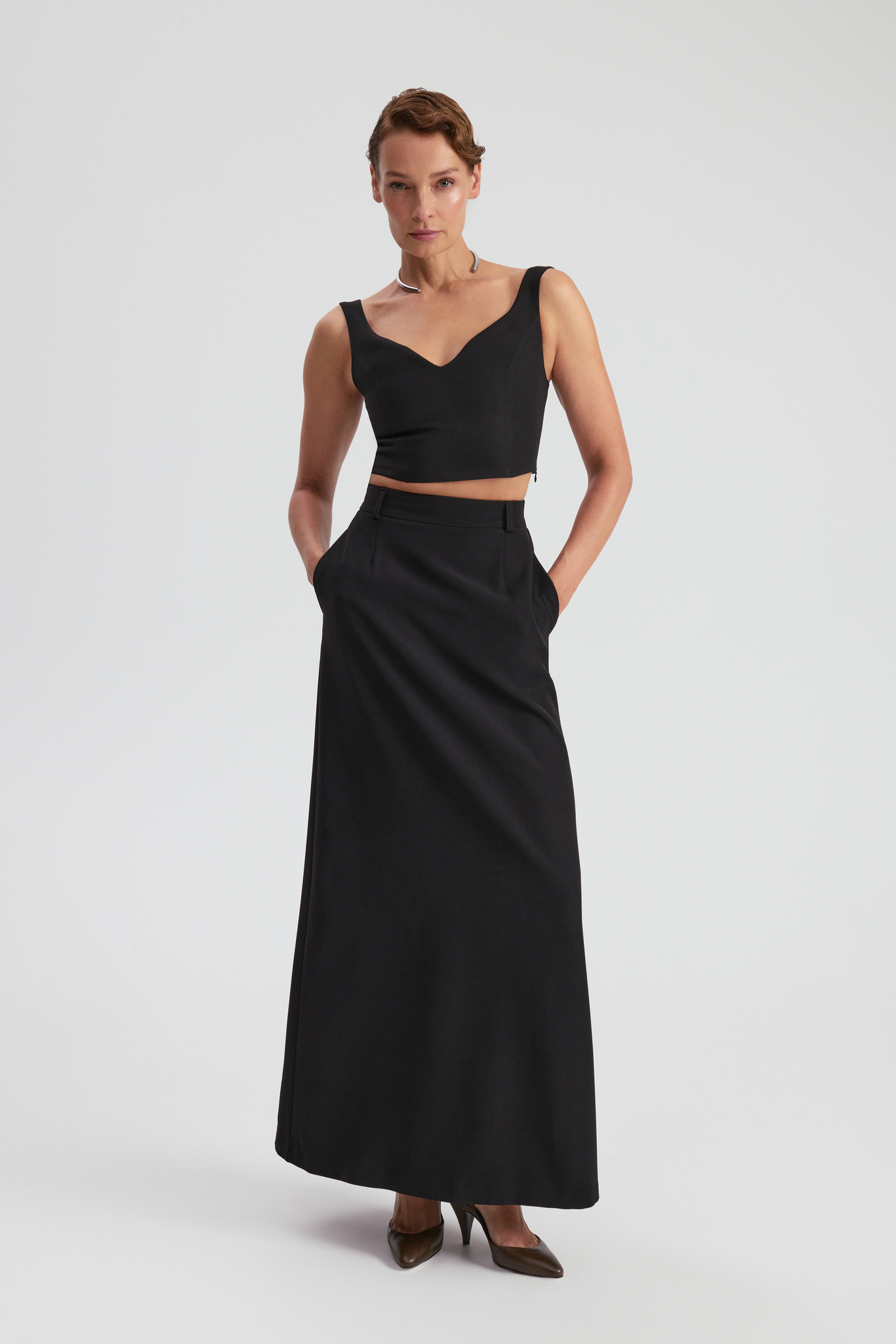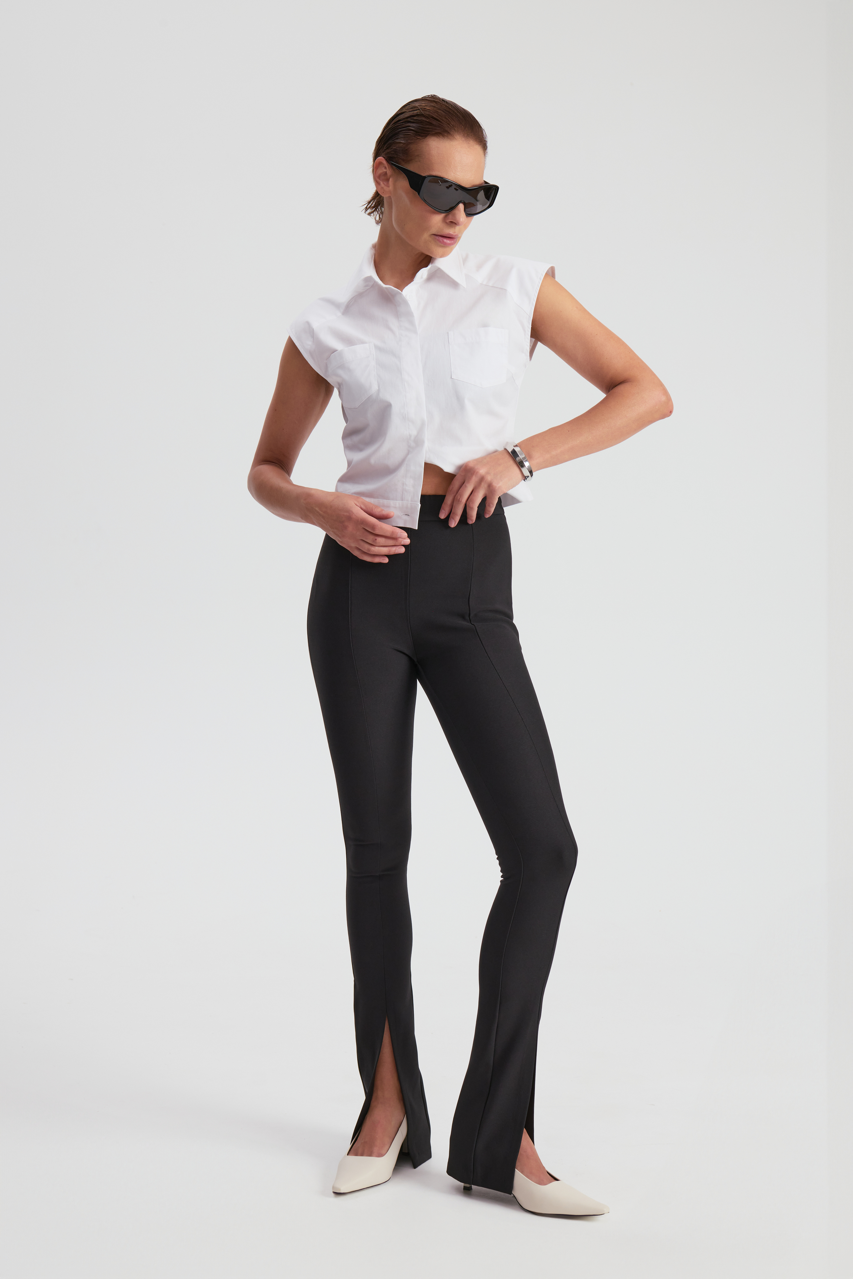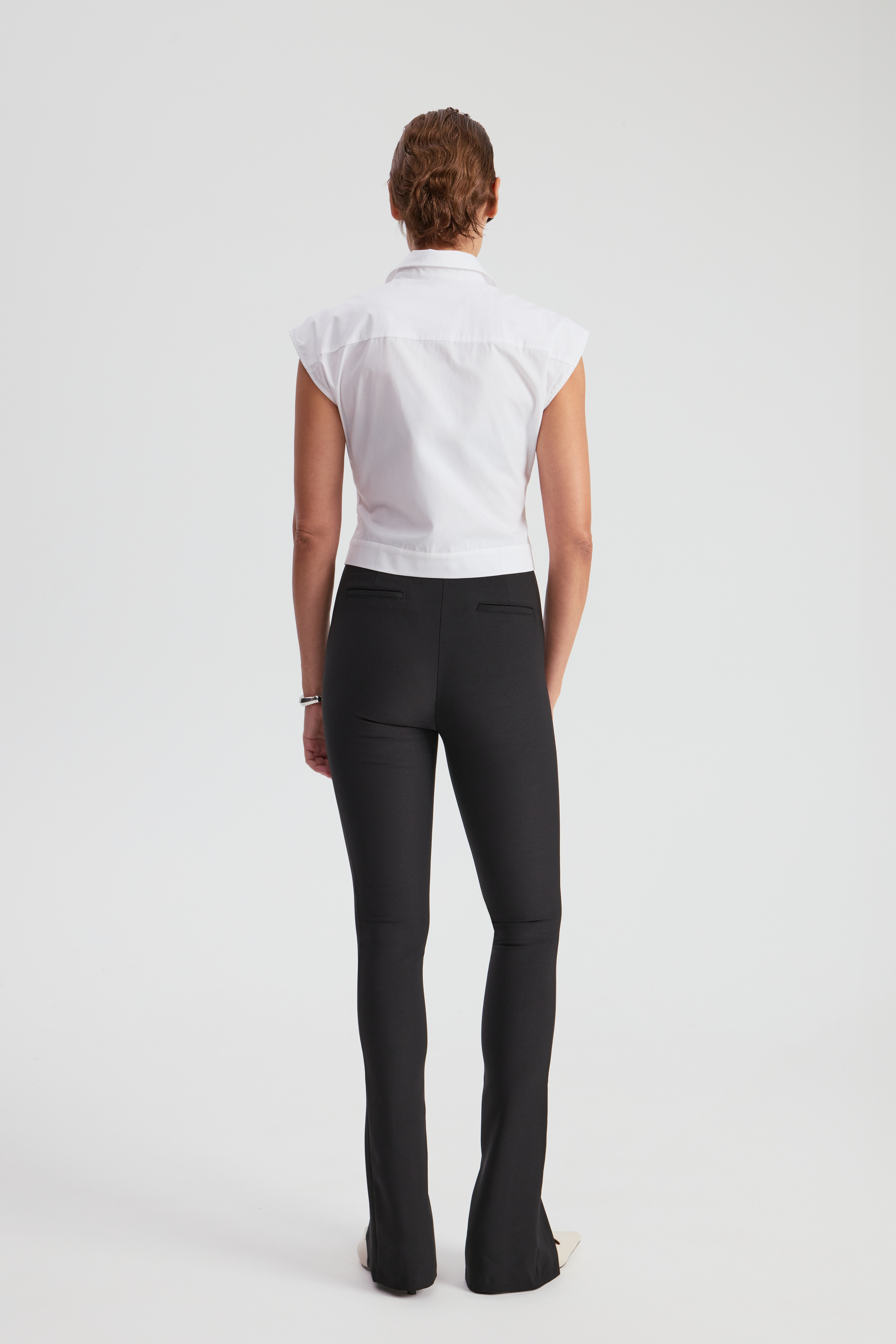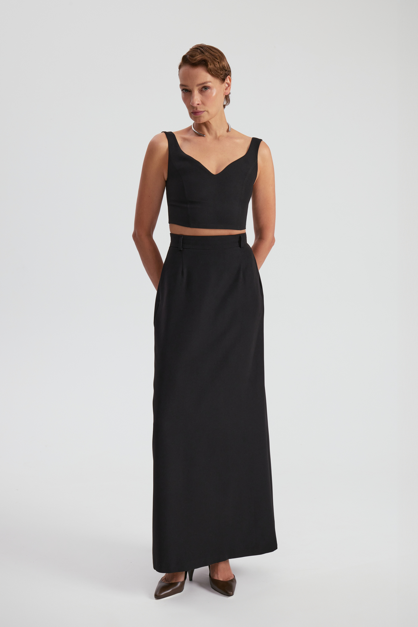 Чёткий силуэт за счёт плотного хлопка и акцентных плеч. Работает как самостоятельный элемент образа. Сочетается с любыми поясными изделиями — от брюк до юбок и денима. Подходит под разные стили и ситуации — от офиса до вечера.